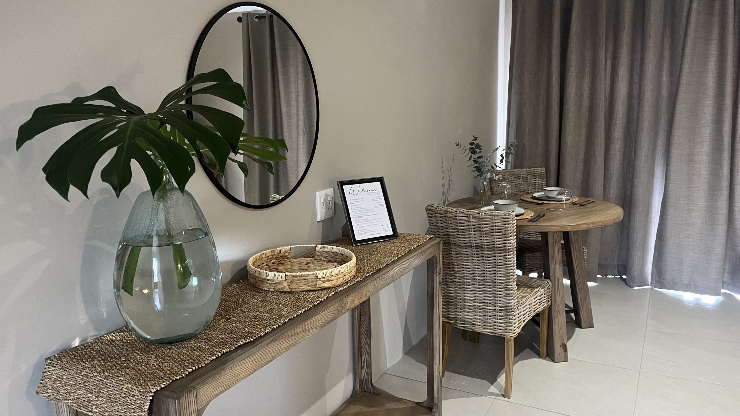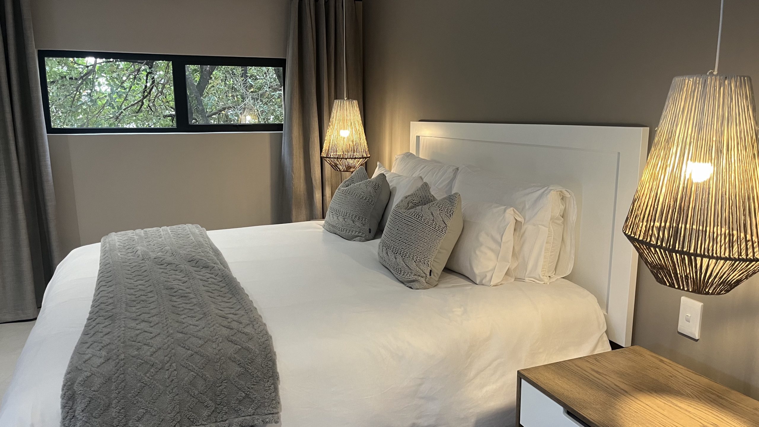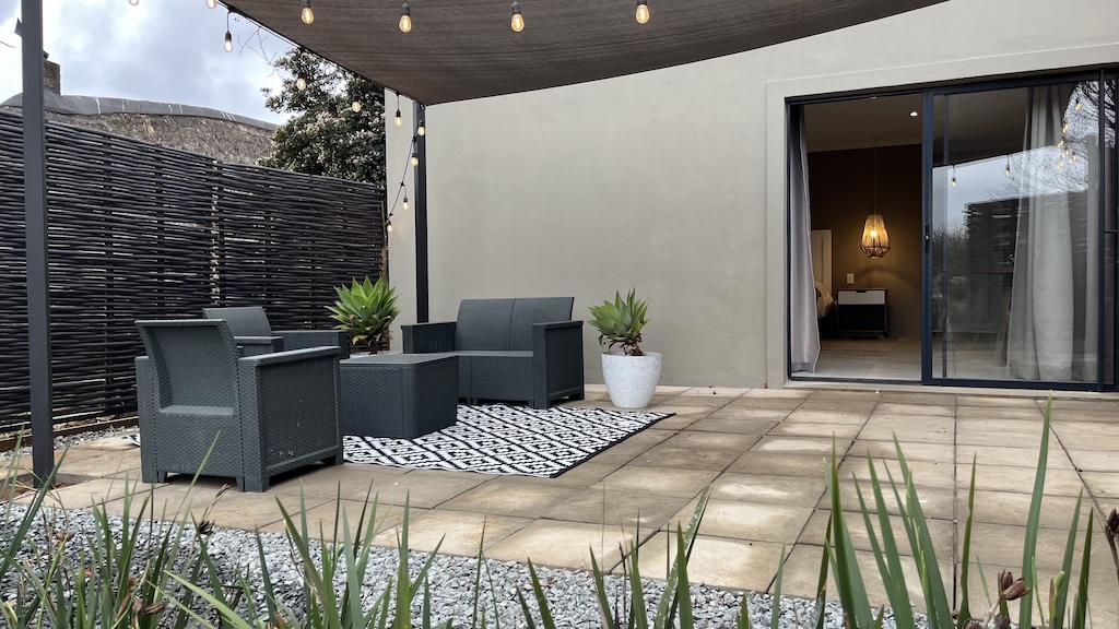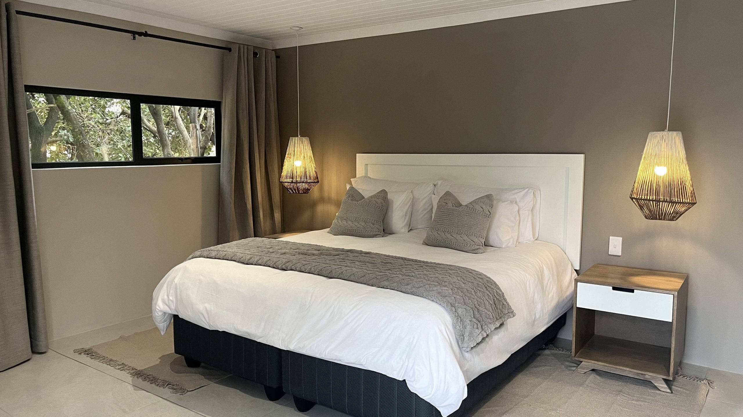A modern, beautifully appointed suite with lovely views of the garden. This is a comfortable and inviting space that you are sure to enjoy. The room has a king size, extra length bed, complete with electric blankets and hot water bottles for those chilly winter nights. The room has a freestanding fan for the warmer nights. The room is equipped with a smart TV that has access to Netflix. There is a DSTV now app on the TV, so you may log into your own DSTV-Now account. Free WiFi is also standard.The full en-suite bathroom has a large walk-in shower, a free-standing bath tub, toilet and basin. Bubble bath is provided for those who would like to relax and unwind from a long day.Tea and coffee is provided and the unit is equipped with a fridge, microwave and kettle for your convenience. The fridge is stocked with fresh, full cream milk. There are no cooking facilities or braai facilities in this unit. A daily cleaning service is also offered at an additional charge of R100 per day. Please book 24 hours ahead for this.We look forward to welcoming you to the Garden Suite.