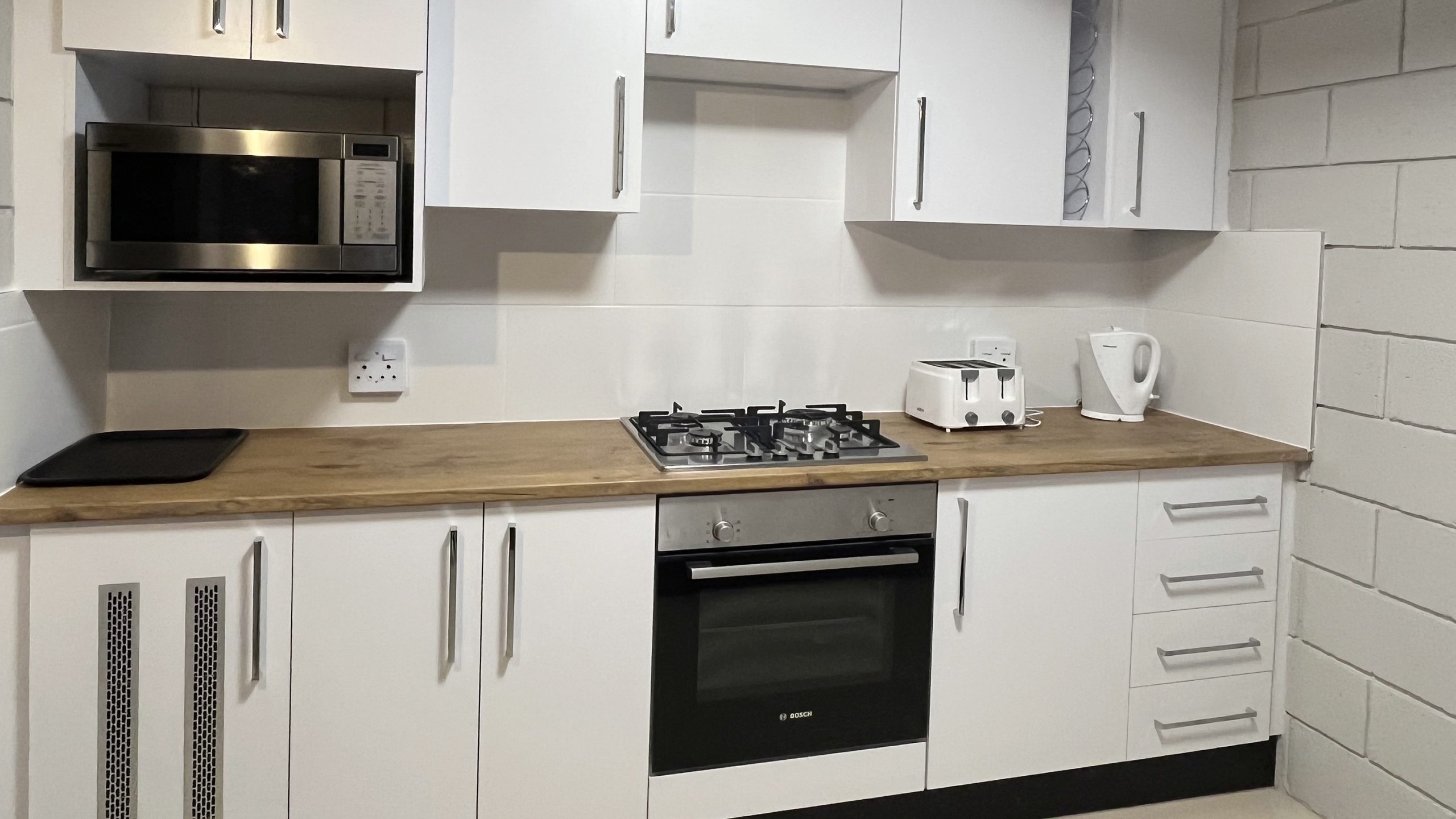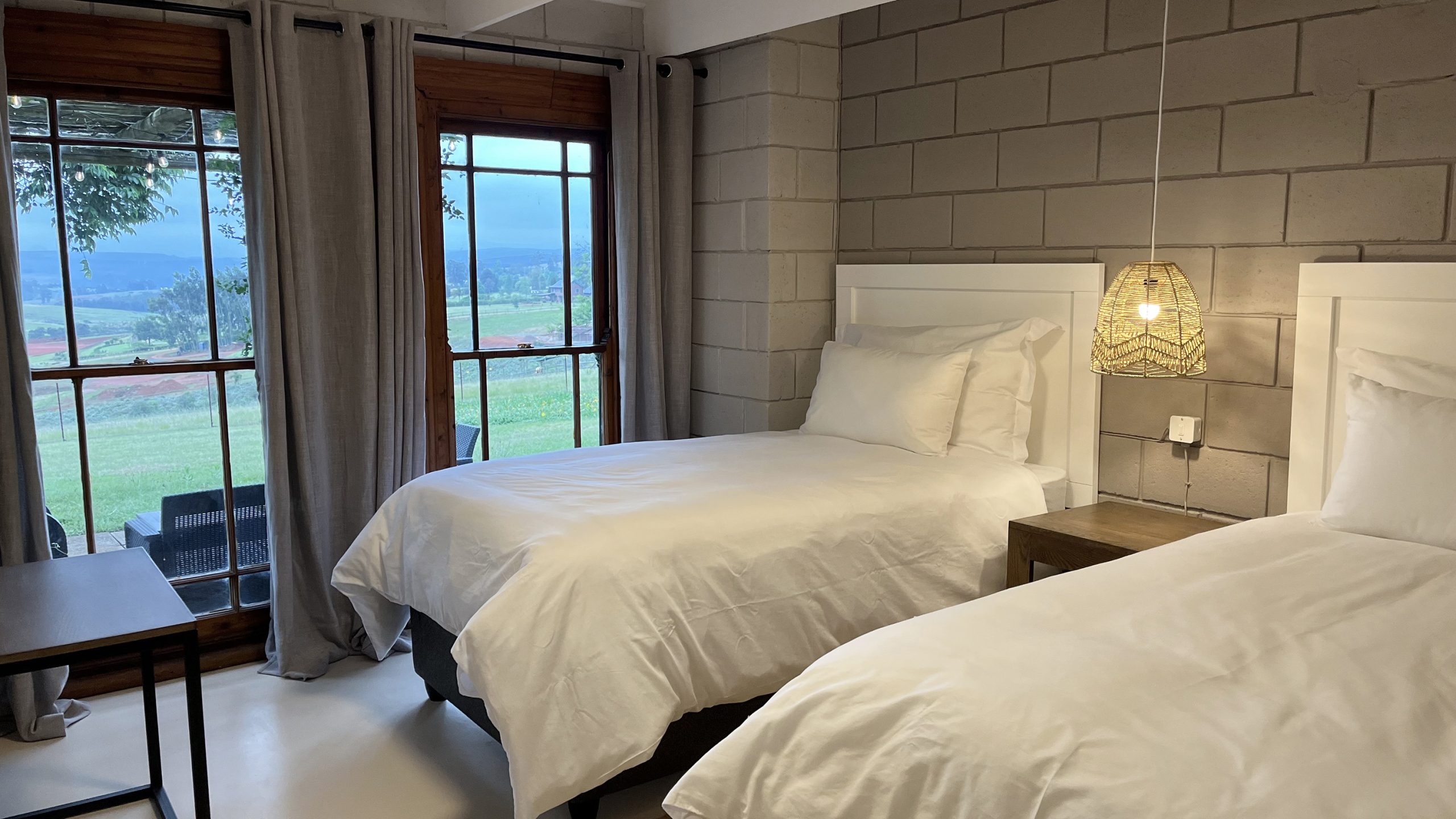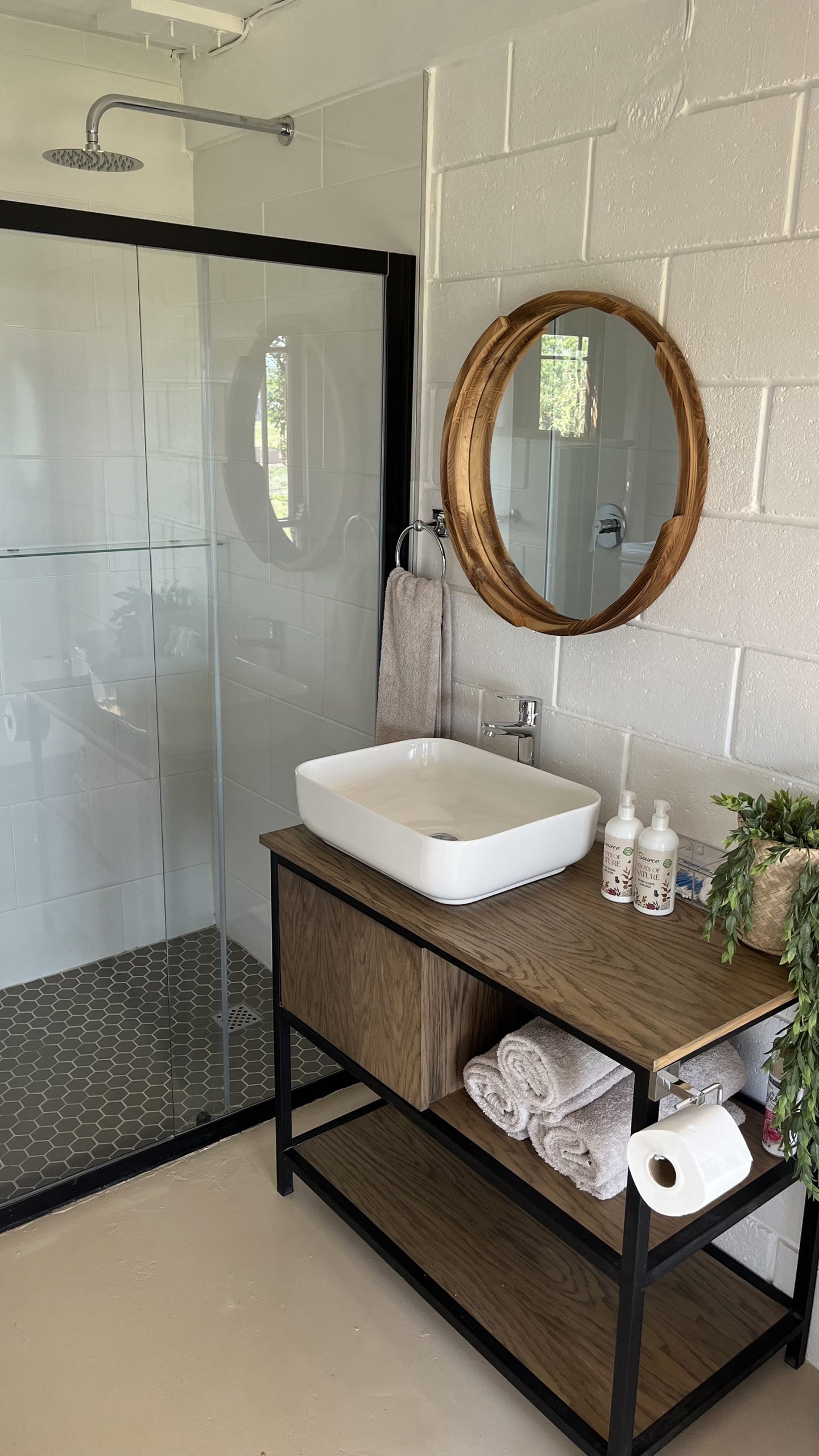 Bedroom 2 – The second bedroom is equally inviting, featuring an open plan, en-suite bathroom with a modern shower, toilet, and a beautiful vanity. Two 3/4 beds fitted with soft linens offer a cozy retreat for guests or family members.