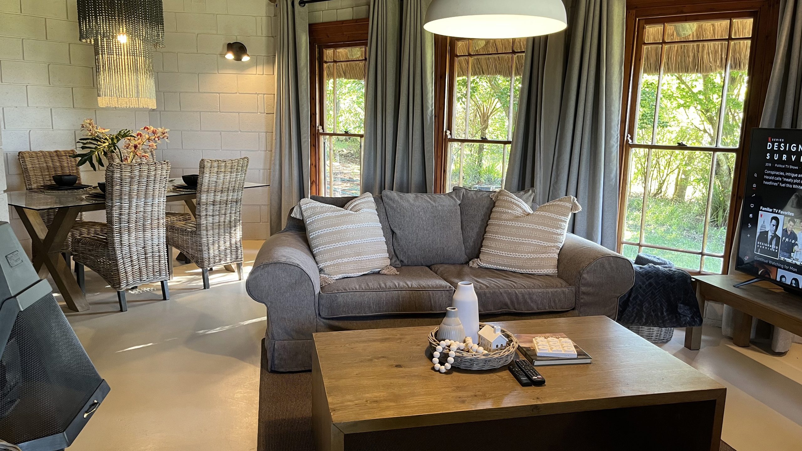 Step inside to discover a spacious living room adorned with comfy sofas and a centerpiece fireplace that exudes warmth and comfort. This inviting space is perfect for unwinding with a good book and a glass of wine.