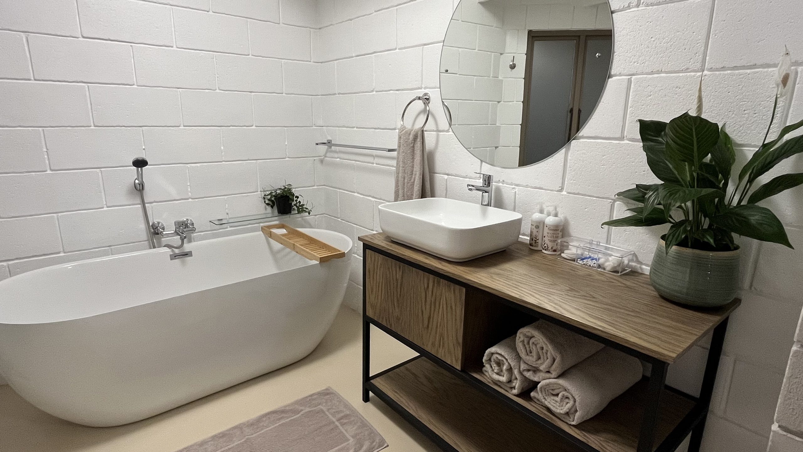 Bedroom 1 – The main bedroom has a soft, King size, extra length, motion-isolating bed, promising comfortable nights of undisturbed rest and rejuvenation. It boasts an en-suite bathroom with a freestanding bathtub, toilet, and a beautiful modern vanity. For added convenience, a walk-in closet provides ample storage space.